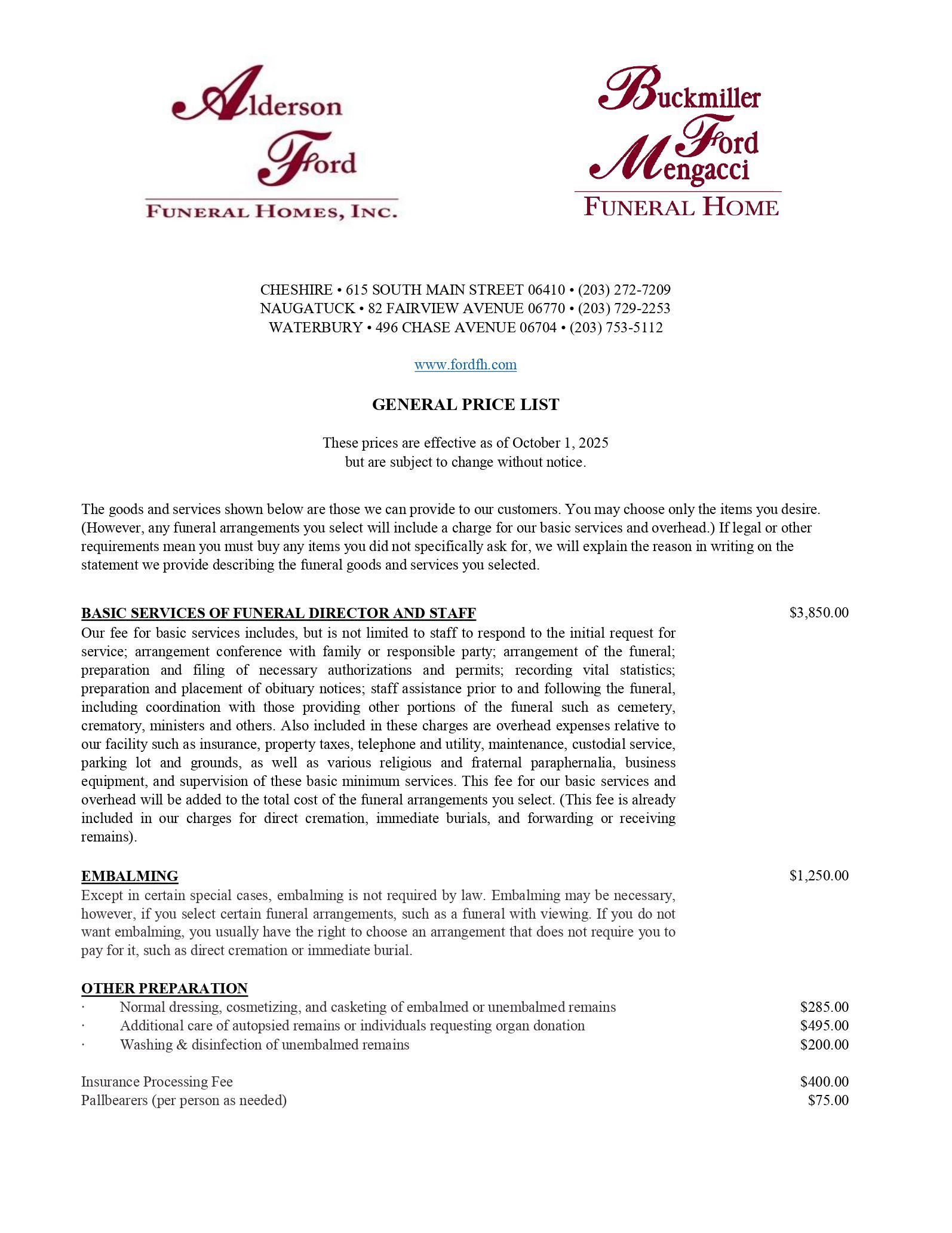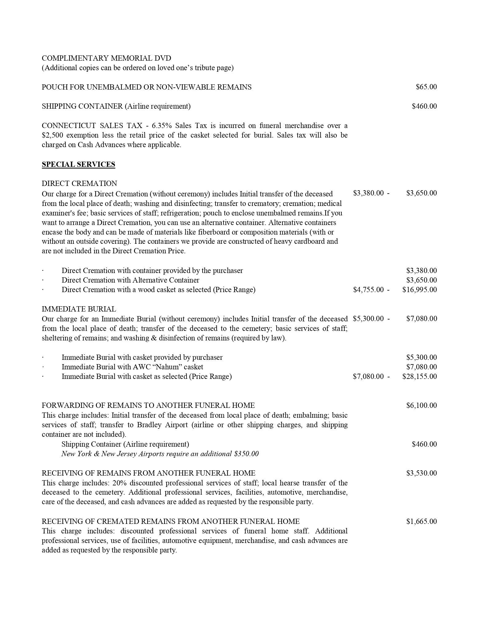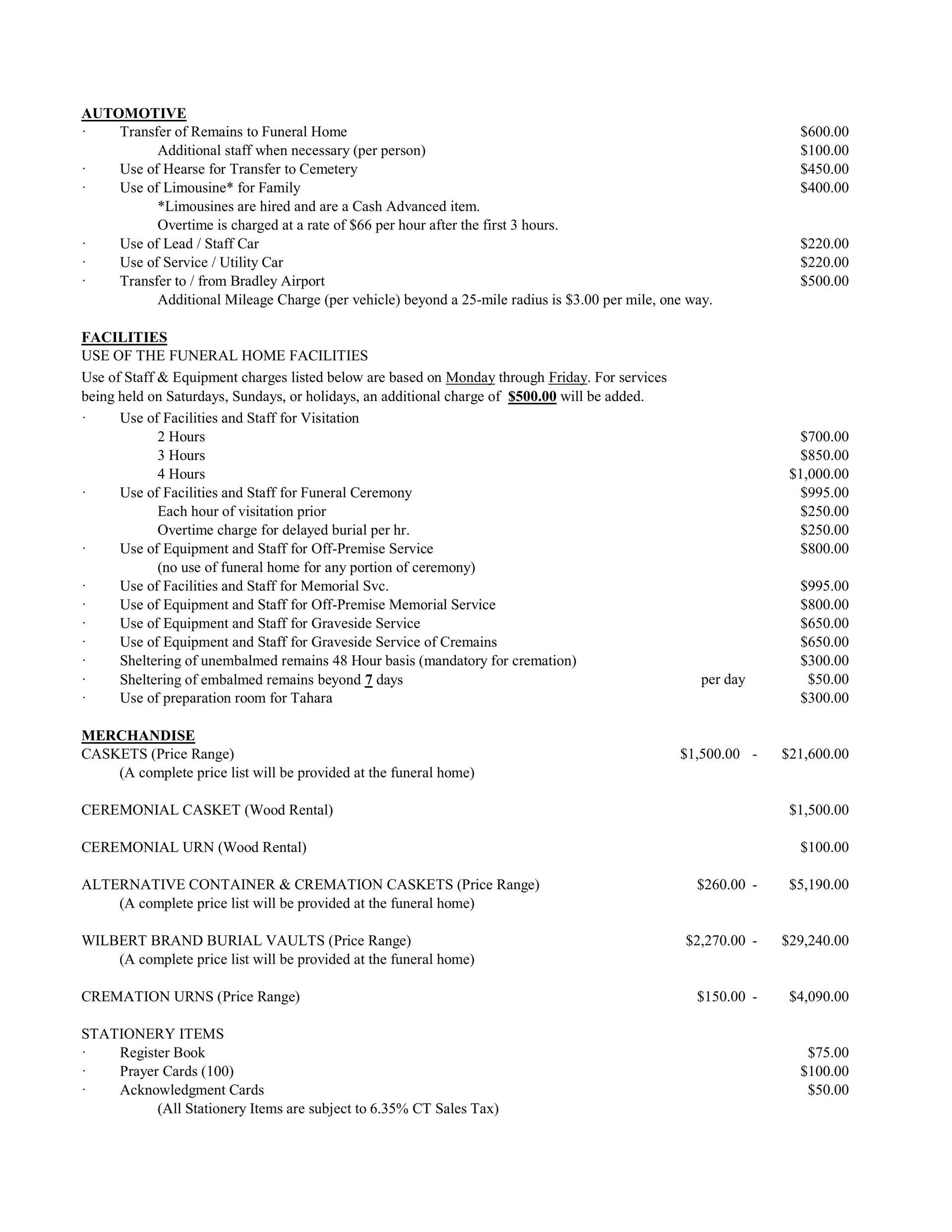 The General Price List is a requirement for all funeral homes. It itemizes the services and merchandise which our business provides, allowing families to compare pricing information for similar services.